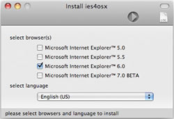 PS.: para o ie4osx é preciso ter instalado os pacotes X11 e o Darwine. O X11 está no DVD de instalação do Mac OS e o Darwine é um fork do Wine para Mac.